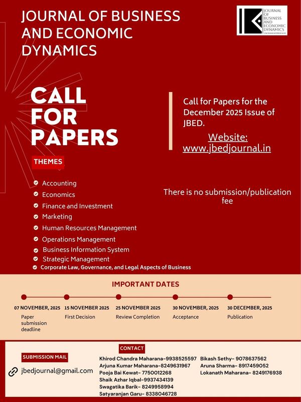 The Journal of Business and Economic Dynamics is a biannual publication dedicated to the study of the ever-evolving landscape of the business world and its economic implications. Our mission is to provide a platform for researchers, scholars, and industry practitioners to share their insights, findings, and innovative ideas that shape the dynamic interplay between business and economics.
